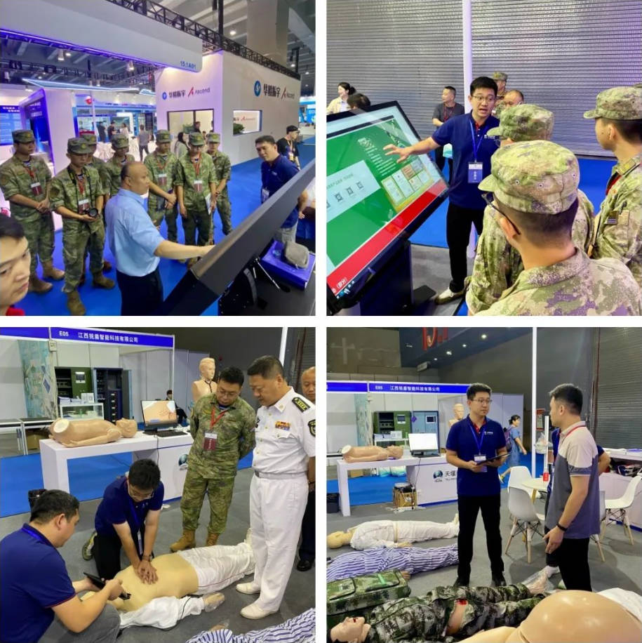 天堰科技作为国内高端医教产品研发制造商和服务提供商,也积极投入卫勤培训设备的开发,并与国内著名军医大学进行强强合作。本次展会携智能化战创伤模拟训练系统、自救互救模拟人、智能分娩模拟人、临床医学模拟病人系统等多款自研产品参加。在为期3天的会展中,天堰科技本着 “让真实触手可及”的宗旨,向参展人员充分展示了天堰科技在军民两用、医学教育领域内的行业优势、产品专业性和丰富性,吸引了众多部队领导停驻展位,交流沟通。