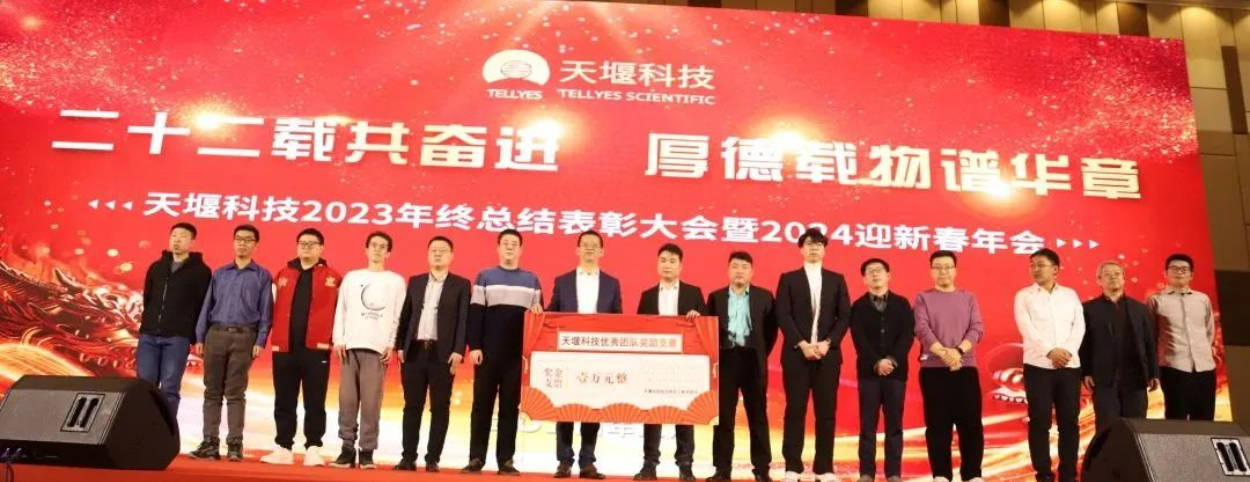 岁月并进,华章日新,2月3日,天堰科技2023年年终总结表彰大会暨2024年迎新春年会隆重召开。来自天堰公司员工以及经销商、合作伙伴代表五百余人齐聚一堂,回顾总结2023年工作,总结经验、表彰优秀;展望2024年,我们凝心聚力,昂首阔步再出发。